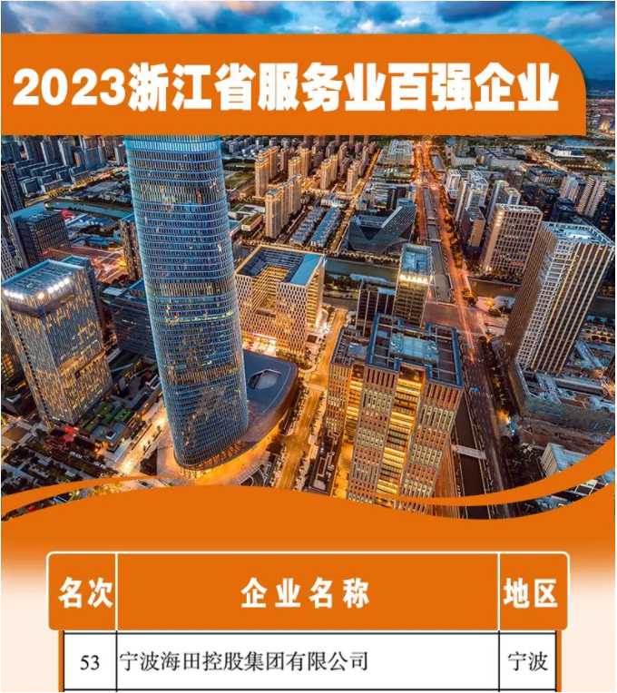 9月27日,浙江省企業(yè)聯(lián)合會(huì )、省企業(yè)家協(xié)會(huì )、省工業(yè)經(jīng)濟聯(lián)合會(huì )聯(lián)合發(fā)布2023年浙江省企業(yè)綜合百強榜及制造業(yè)、服務(wù)業(yè)、競爭力百強榜。其中,寧波海田控股集團再次以強勁實(shí)力榮登榜單,位列浙江省服務(wù)業(yè)百強企業(yè)第53位。